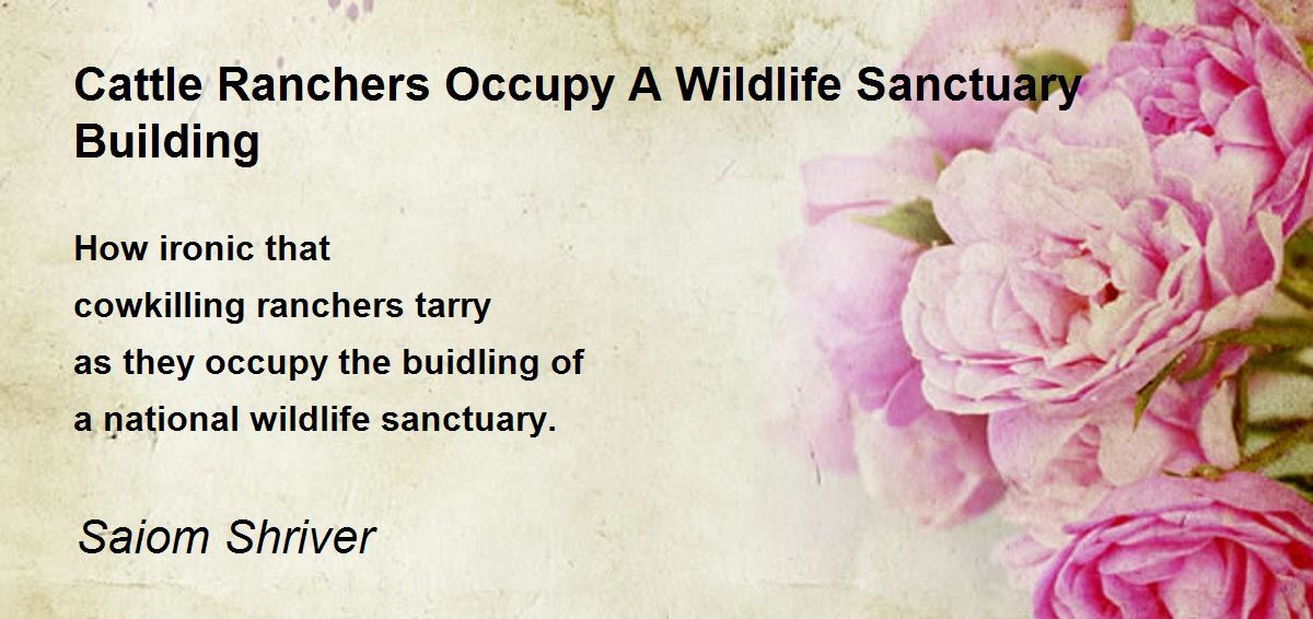 are coordinating the occupation of the Malheur National Wildlife Refuge, one of the oldest bird sanctuaries in the country. The armed occupiers want more money put into private ranchers' hands. The effect would be increased global heating, animal agony, deforestation, human diseases, energy waste and other toxic consequences of the mammal murder trade..