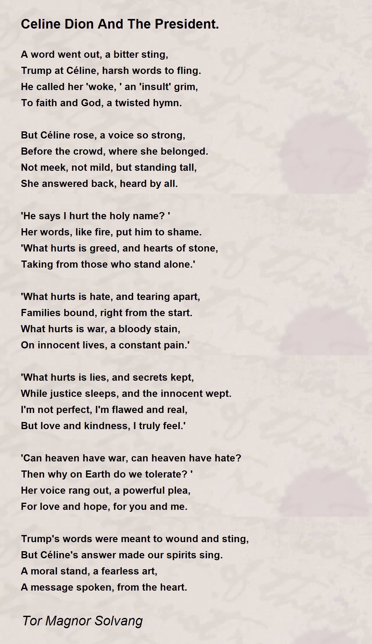 But Céline's answer made our spirits sing.