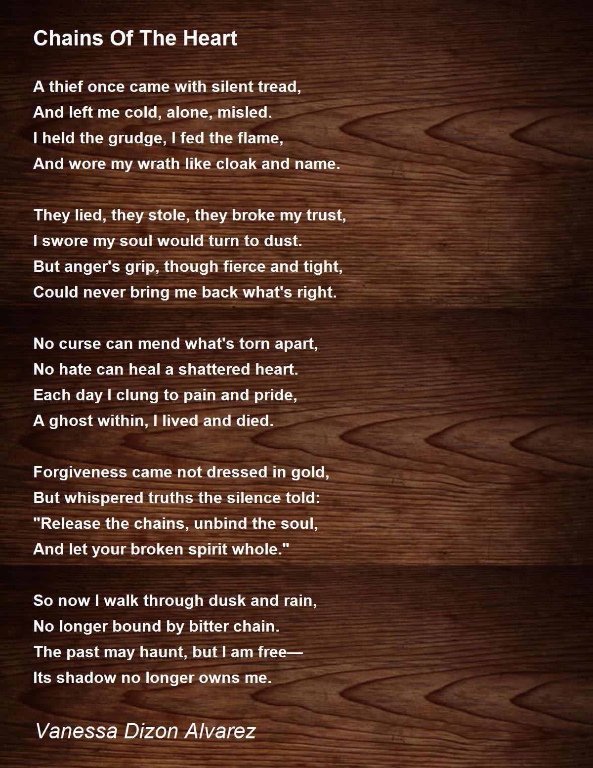 No longer bound by bitter chain.