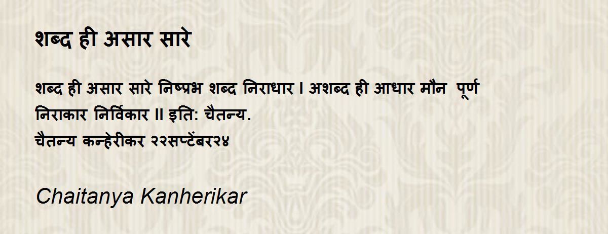 शब्द ही असार सारे निष्प्रभ शब्द निराधार l अशब्द ही आधार मौन पूर्ण निराकार निर्विकार ll इति: चैतन्य. चैतन्य कन्हेरीकर २२सप्टेंबर२४
