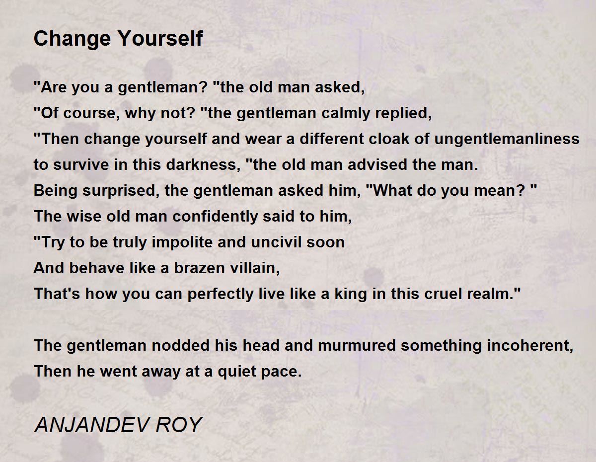 "Then change yourself and wear a different cloak of ungentlemanliness to survive in this darkness, "the old man advised the man.