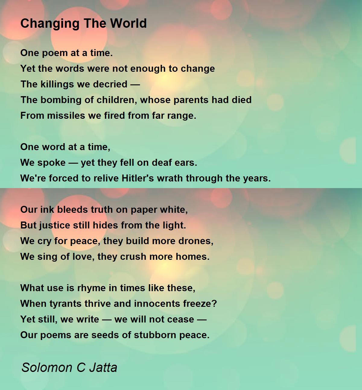 Our poems are seeds of stubborn peace.