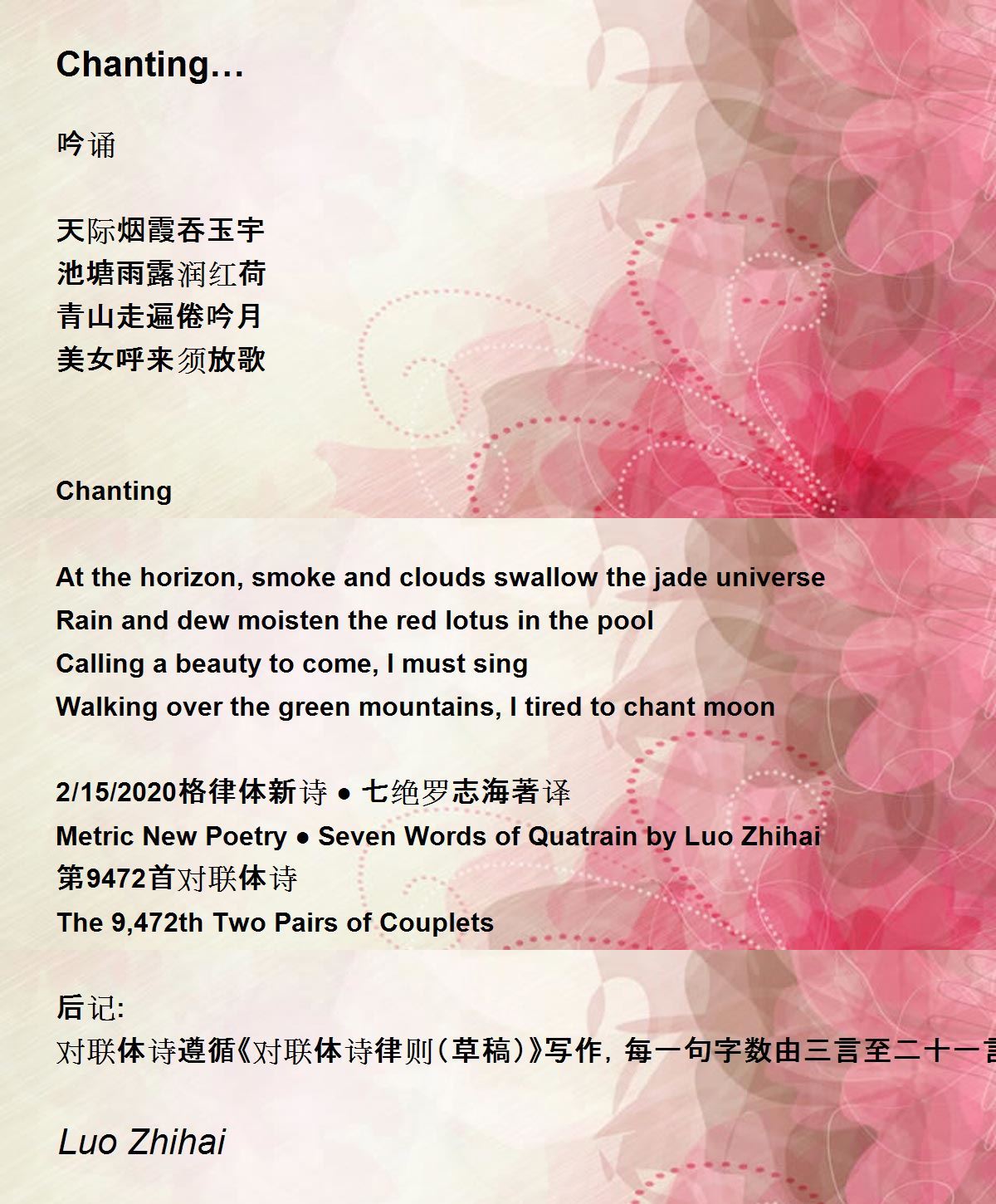 2/15/2020格律体新诗 ● 七绝罗志海著译