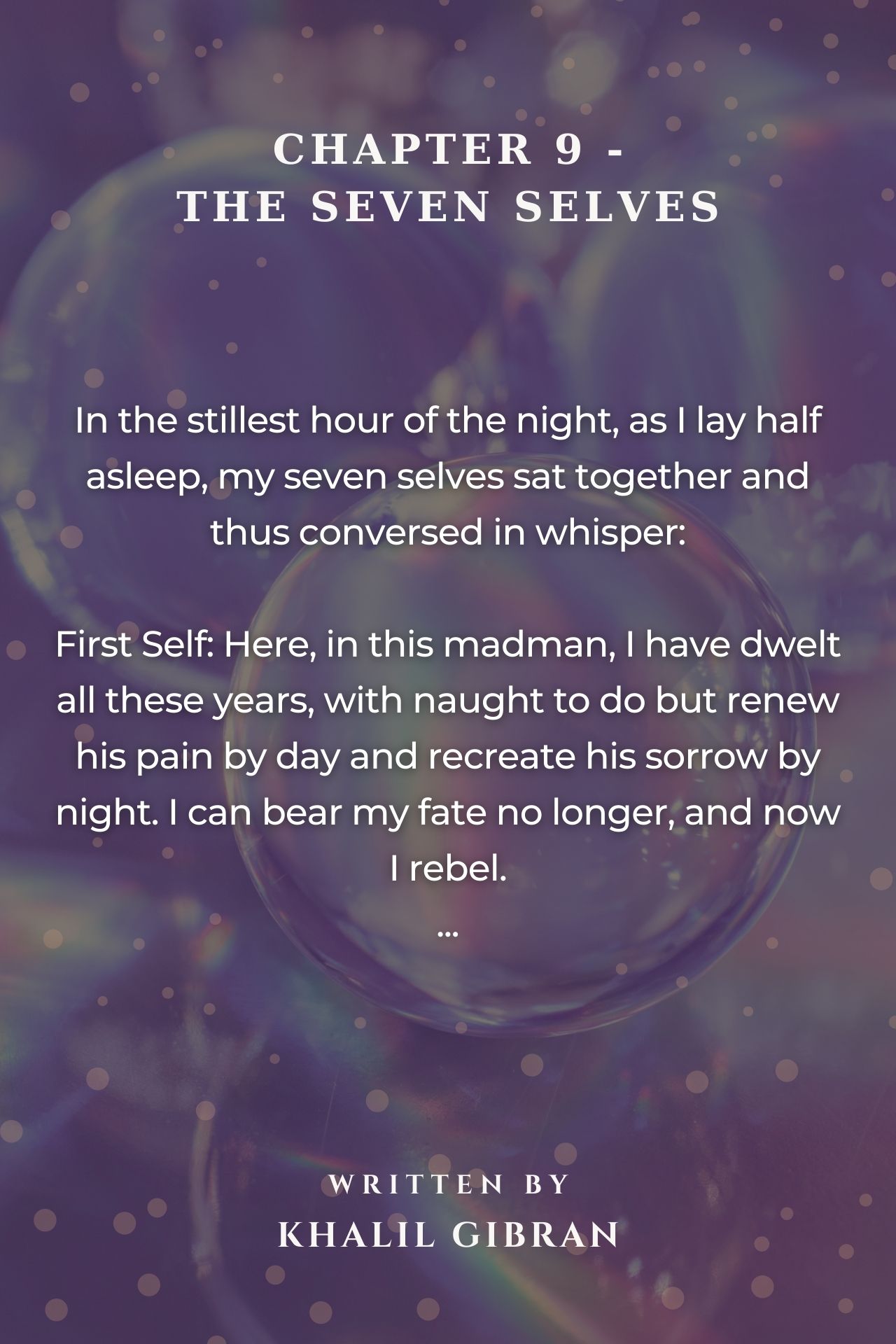 In the stillest hour of the night, as I lay half asleep, my seven selves sat together and thus conversed in whisper: