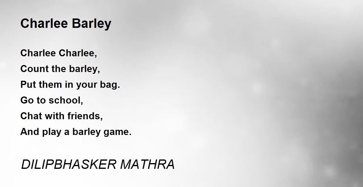 Charlee Charlee, Count the barley, Put them in your bag. Go to school, Chat with friends, And play a barley game.