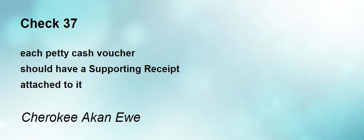 each petty cash voucher should have a Supporting Receipt attached to it