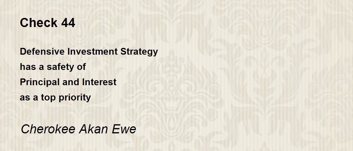Defensive Investment Strategy has a safety of Principal and Interest as a top priority