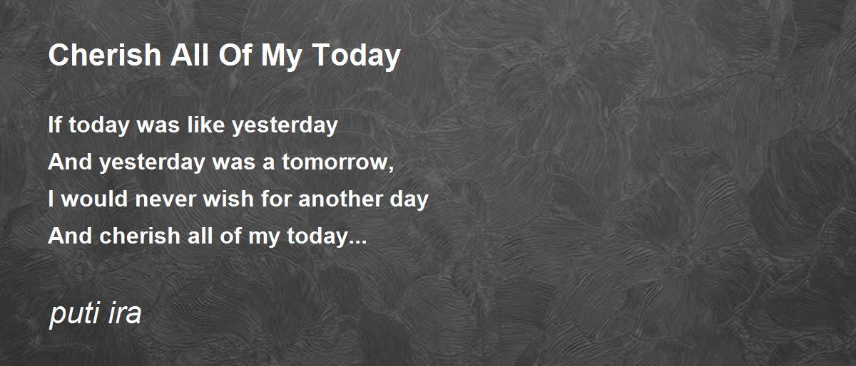 If today was like yesterday And yesterday was a tomorrow, I would never wish for another day And cherish all of my today...