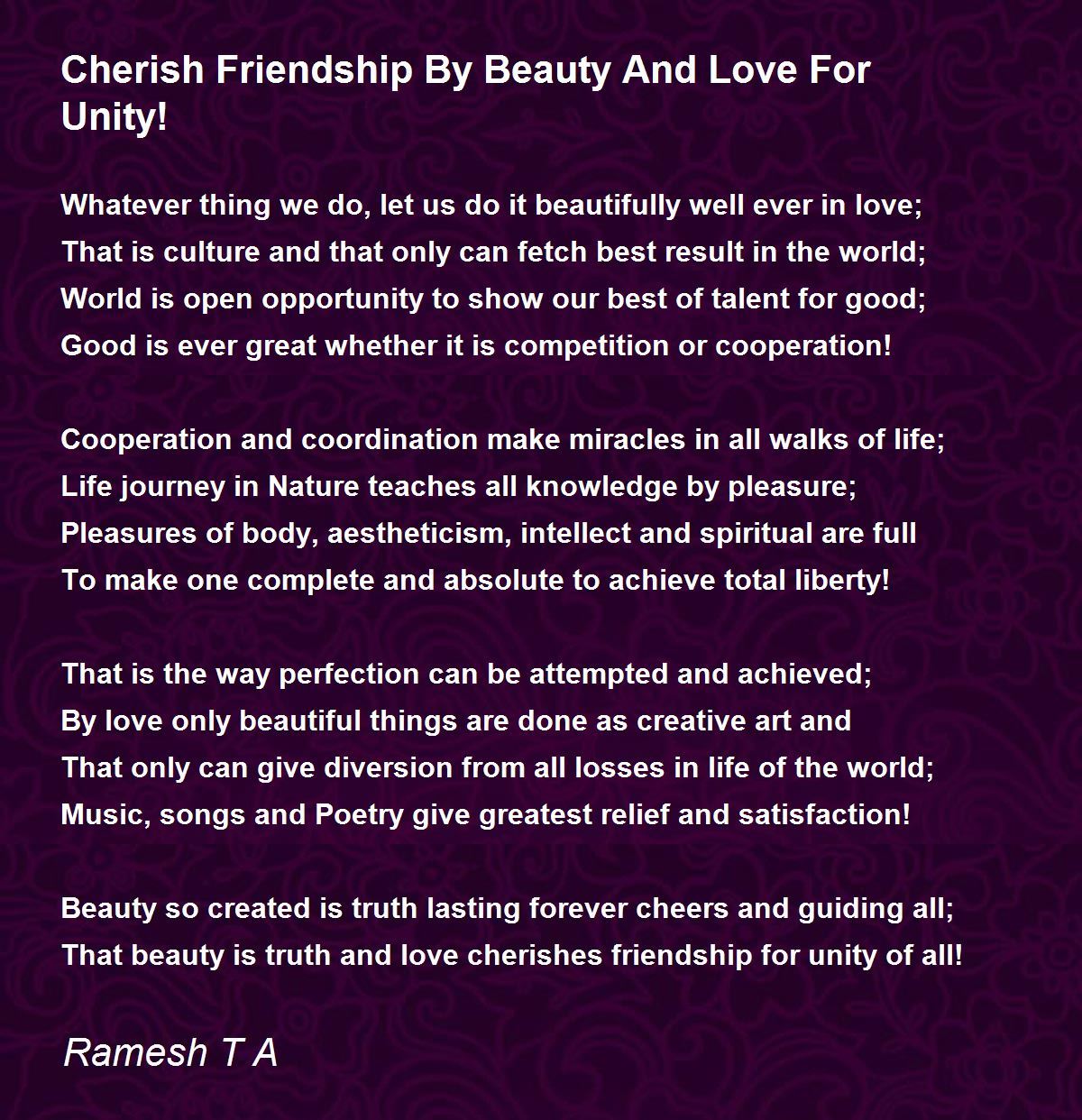 Beauty so created is truth lasting forever cheers and guiding all; That beauty is truth and love cherishes friendship for unity of all!