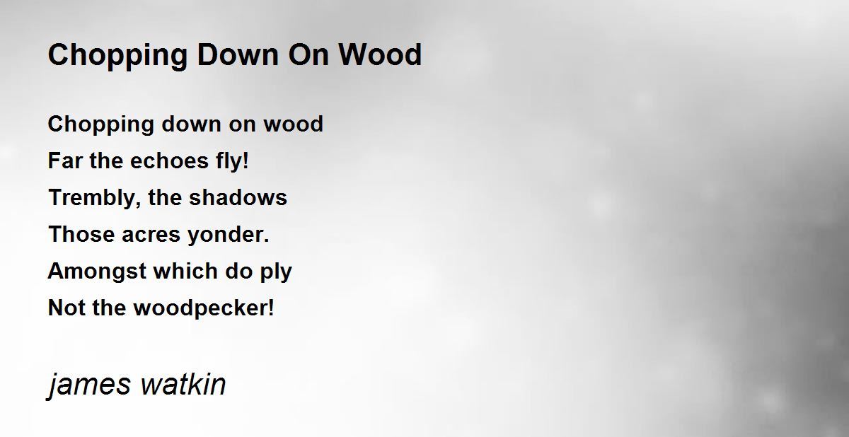 Chopping down on wood Far the echoes fly! Trembly, the shadows Those acres yonder. Amongst which do ply Not the woodpecker!