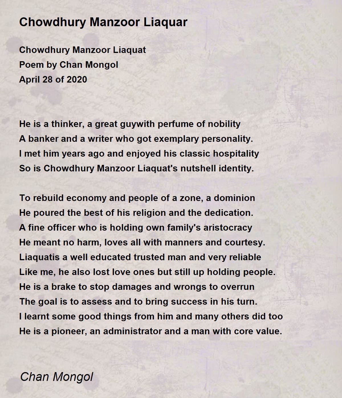 So is Chowdhury Manzoor Liaquat's nutshell identity.
