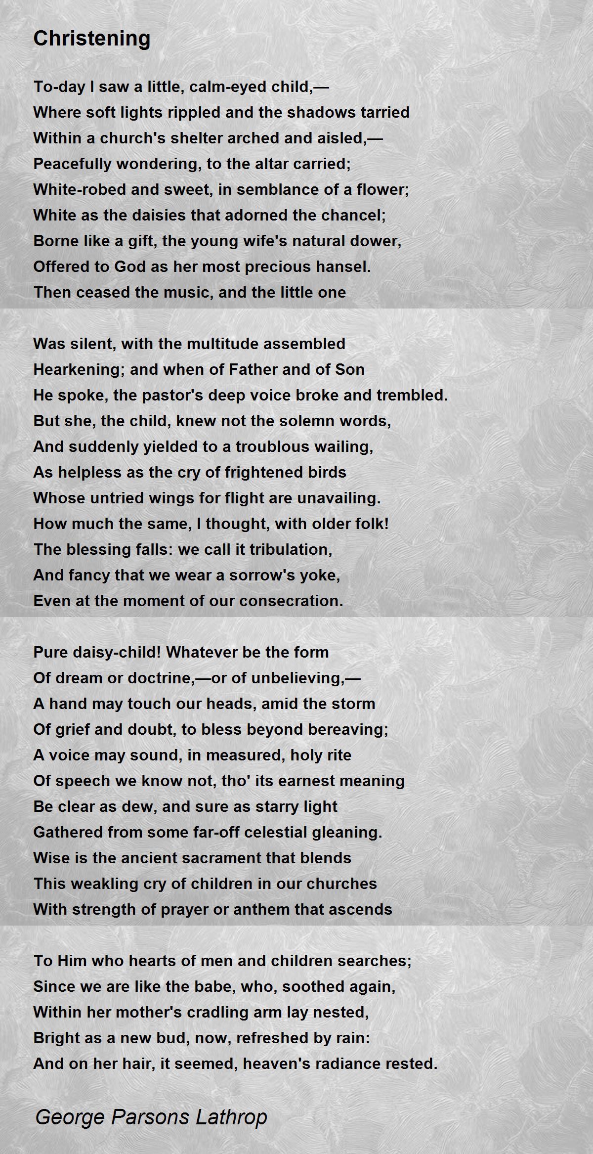 But she, the child, knew not the solemn words,