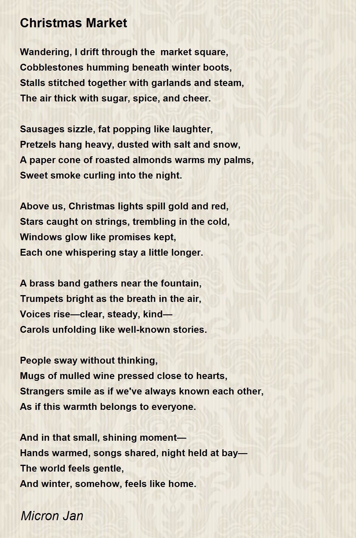 Wandering, I drift through the market square,