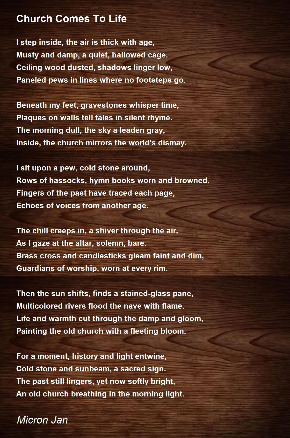 I sit upon a pew, cold stone around,