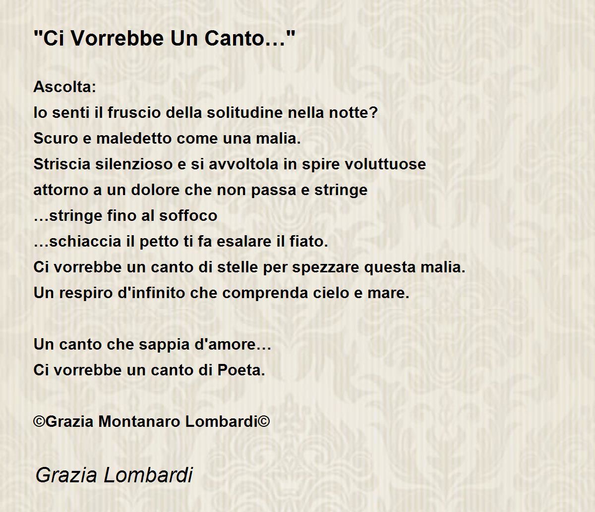 " Ci vorrebbe un canto di Poeta." ..Molto ben scritto, la musica interiore, l'amara dolcezza dei sentimenti, la bellezza delle parole... Grazie per aver condiviso! Magdalena.