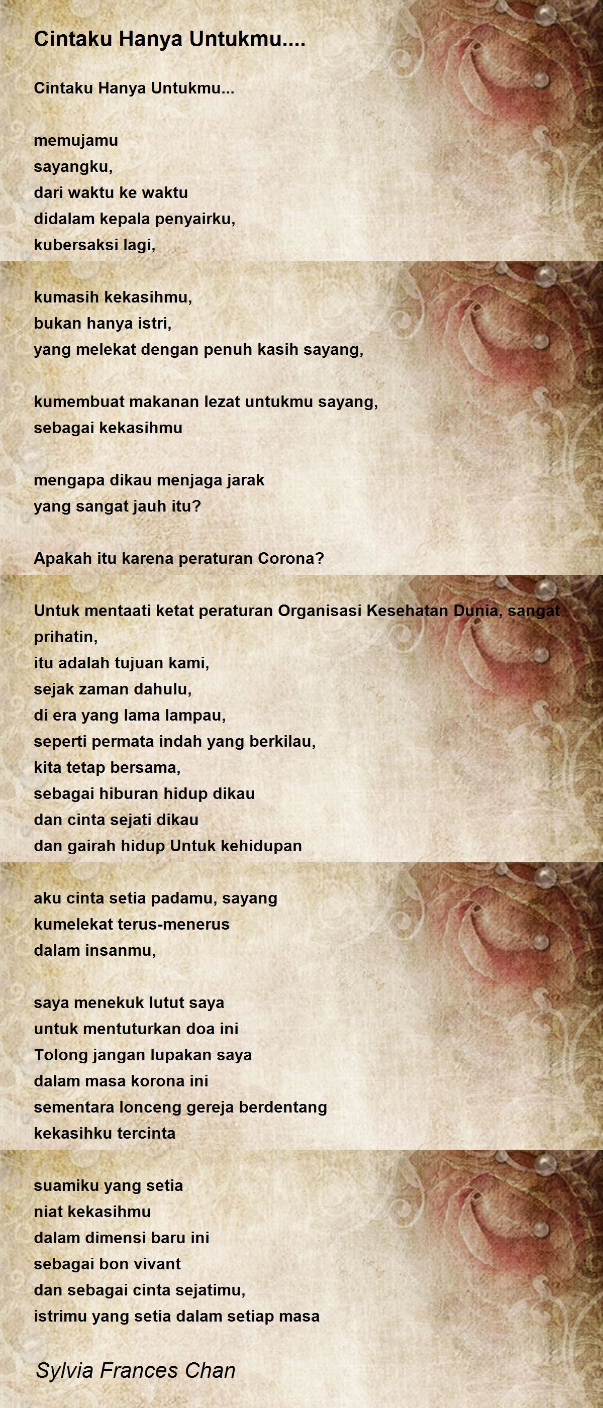 Due to existence of Corona he maintains the distance. The poet's head is again testified and constantly the memory is clinging. God's love falls on life and breath of life is felt very well. Love for dearest specialist is reflected very well.. God is your witness and his bliss falls on you and your family very nicely! An excellent poem is beautifully penned...10 " selama aku bernafas dekat perapian rumah kami yang nyaman"