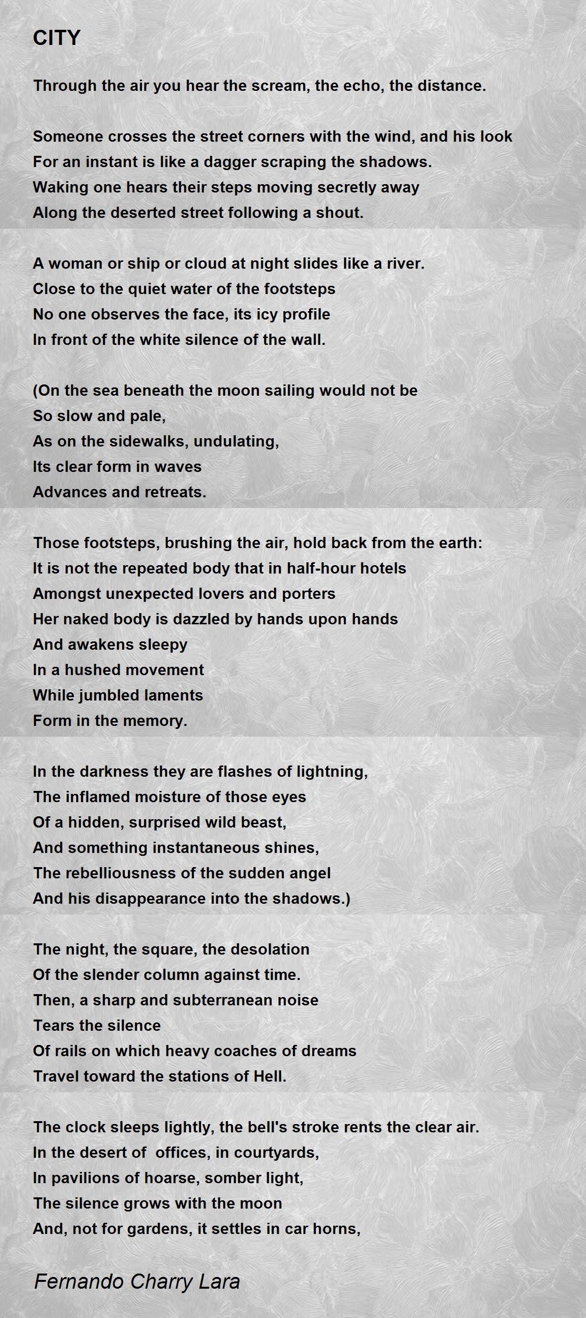 Its wings go on in avenues, its lugubrious flight in suburbs: