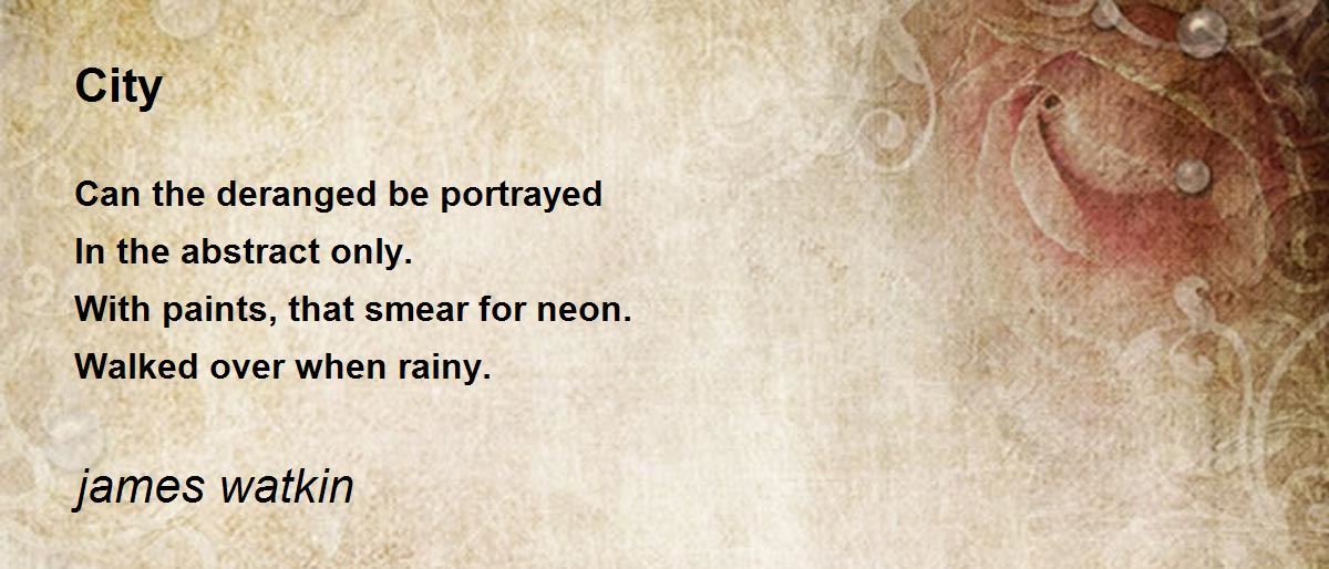 Can the deranged be portrayed In the abstract only. With paints, that smear for neon. Walked over when rainy.