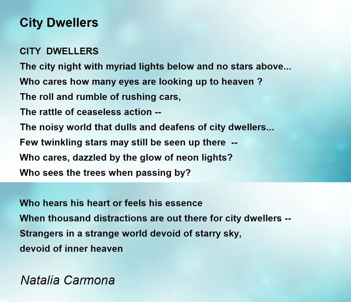 The noisy world that dulls and deafens of city dwellers...