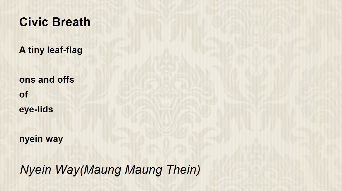 A tiny leaf-flag ons and offs of eye-lids nyein way