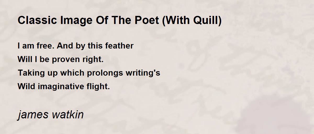 I am free. And by this feather Will I be proven right. Taking up which prolongs writing's Wild imaginative flight.