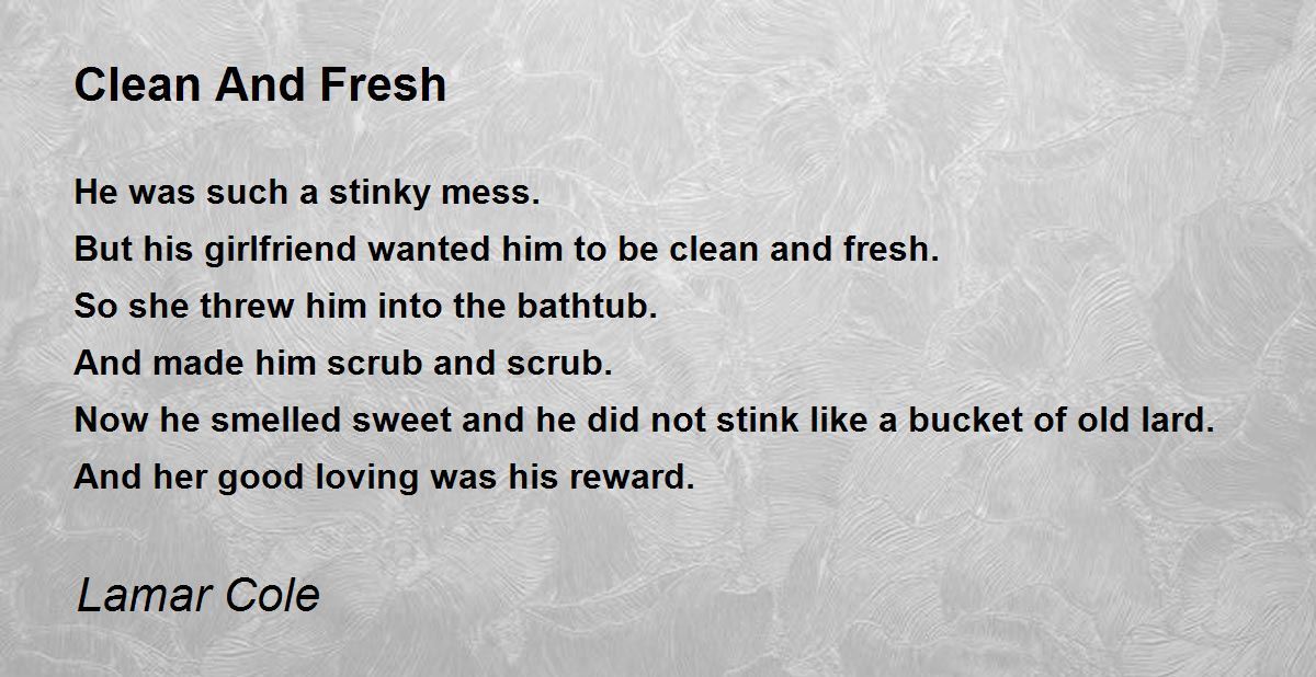 Now he smelled sweet and he did not stink like a bucket of old lard.
