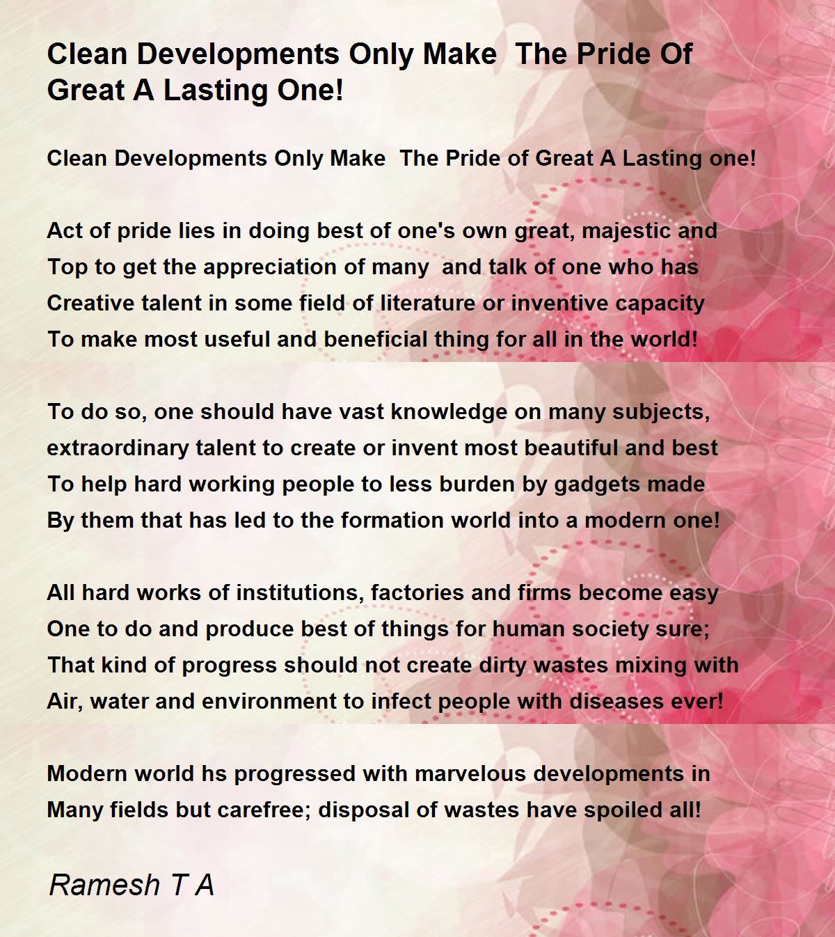 Clean Developments Only Make The Pride of Great A Lasting one!
