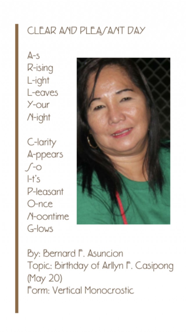 Topic: Birthday of Arllyn F. Casipong (May 20)