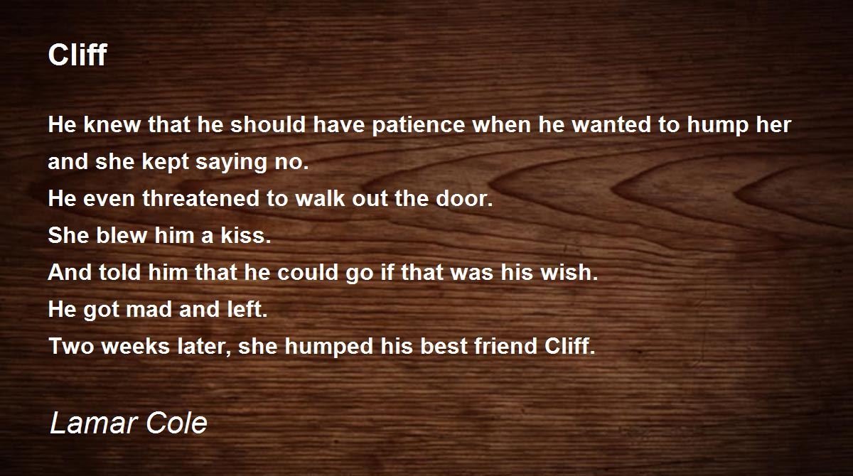 Two weeks later, she humped his best friend Cliff.