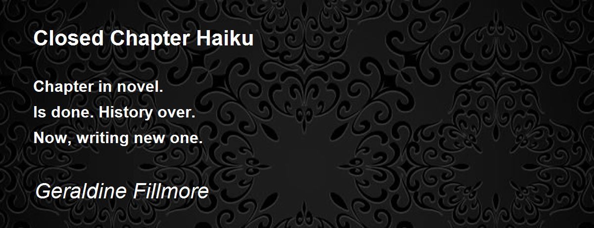 Chapter in novel. Is done. History over. Now, writing new one.