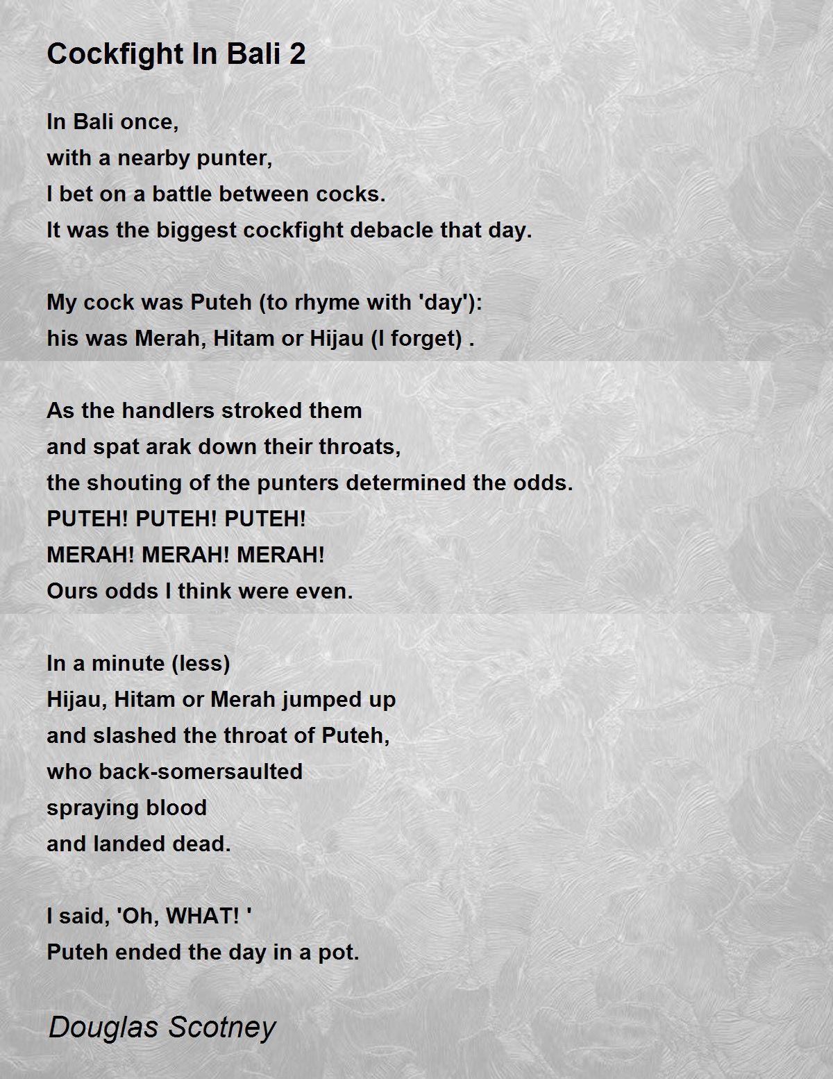 I bet on a battle between cocks.