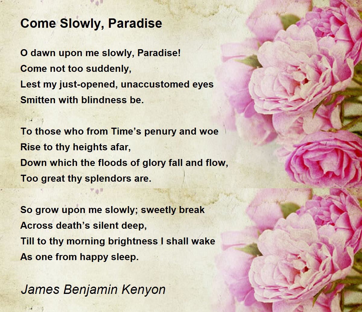 O dawn upon me slowly, Paradise!