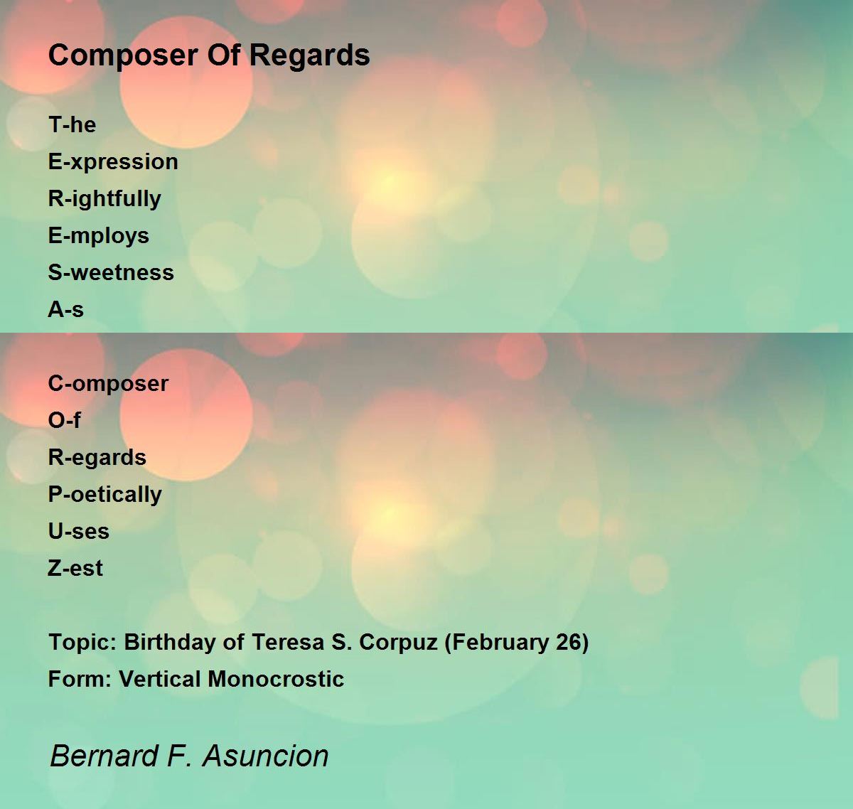 Topic: Birthday of Teresa S. Corpuz (February 26)