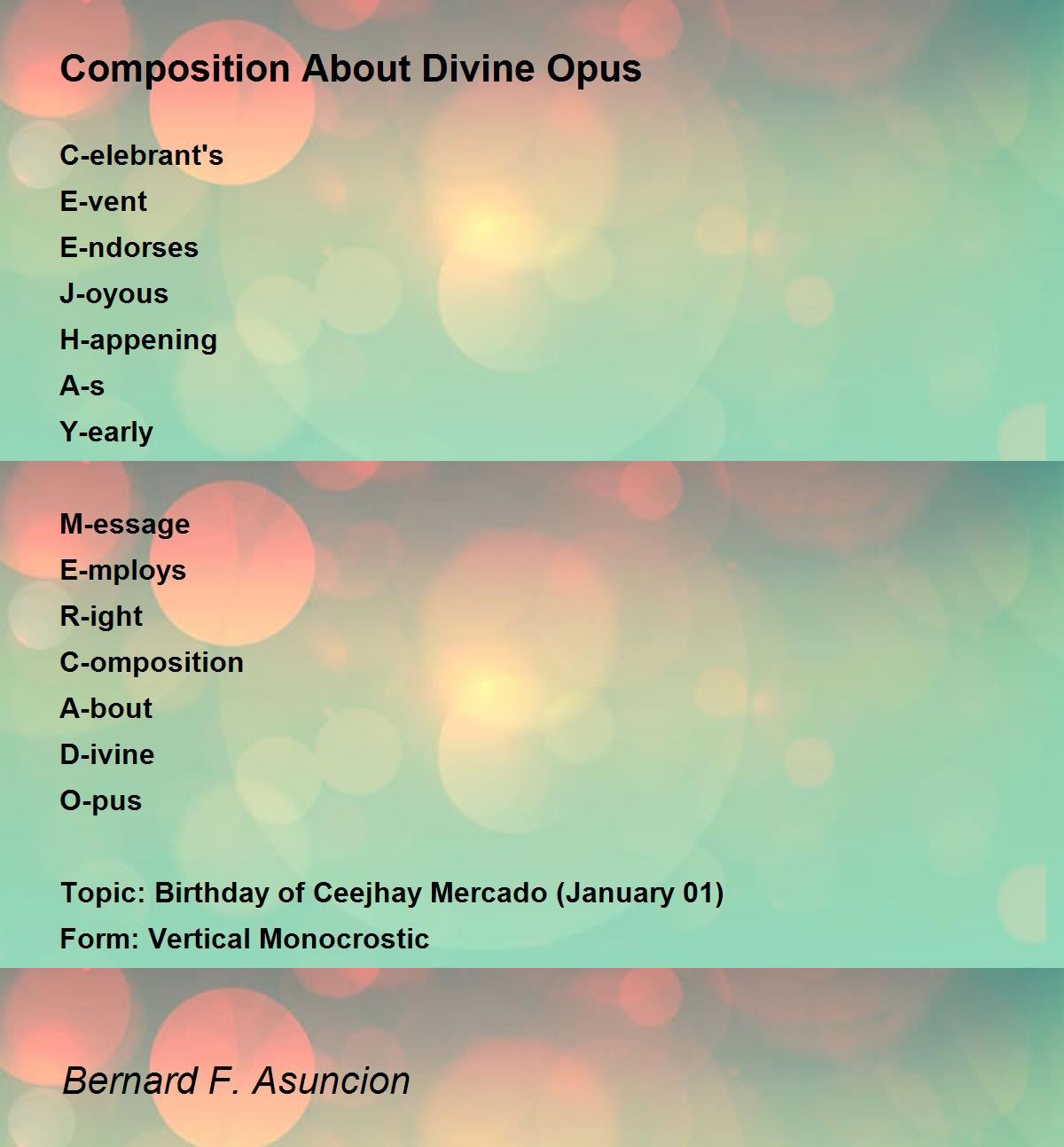 Topic: Birthday of Ceejhay Mercado (January 01)
