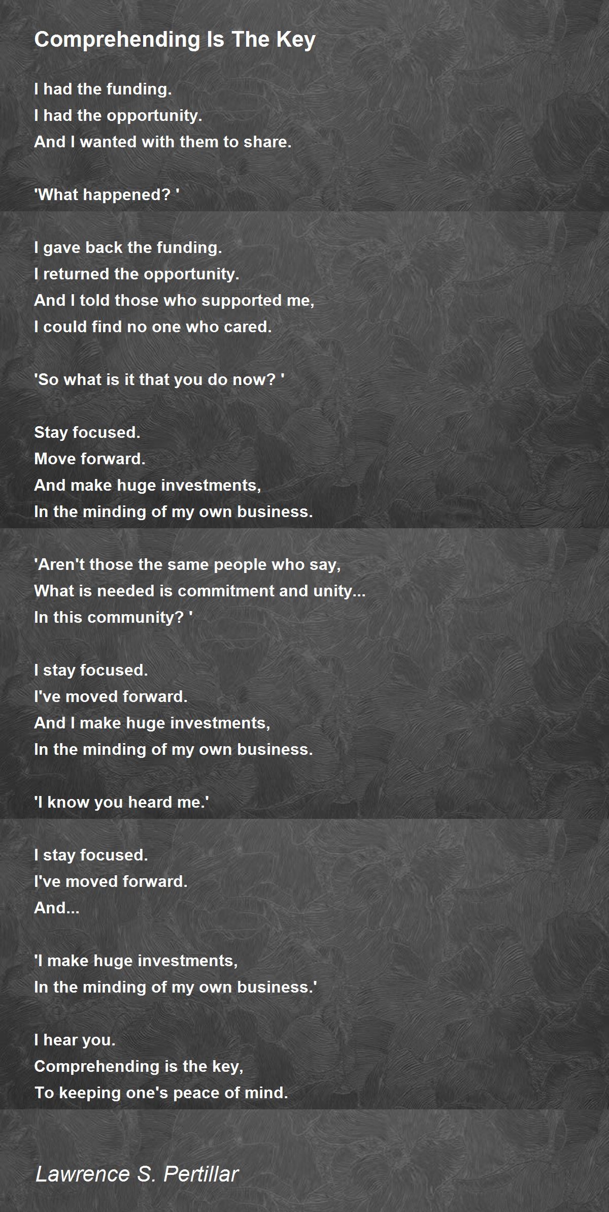 Comprehending is the key,