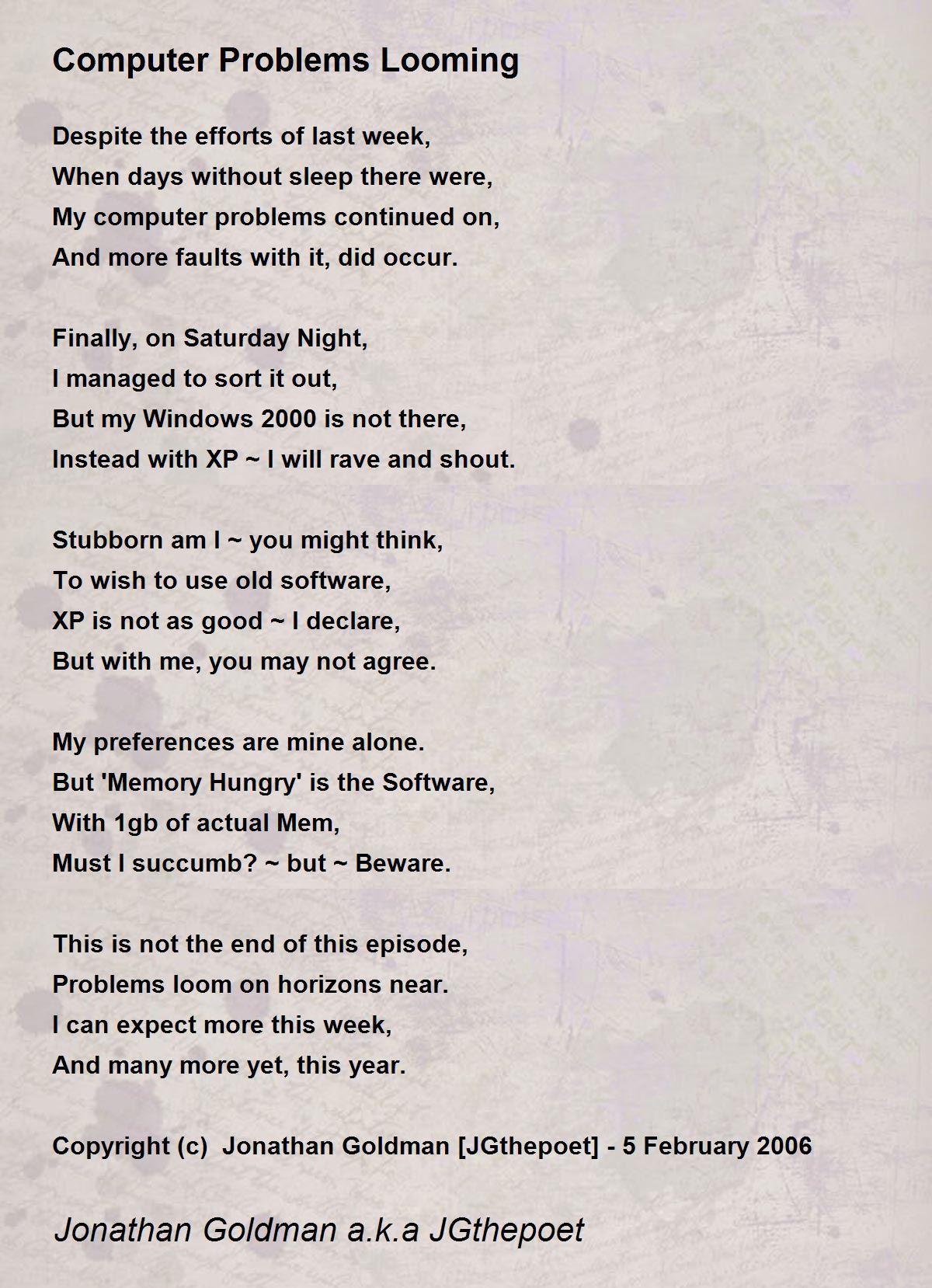 Copyright (c) Jonathan Goldman [JGthepoet] - 5 February 2006