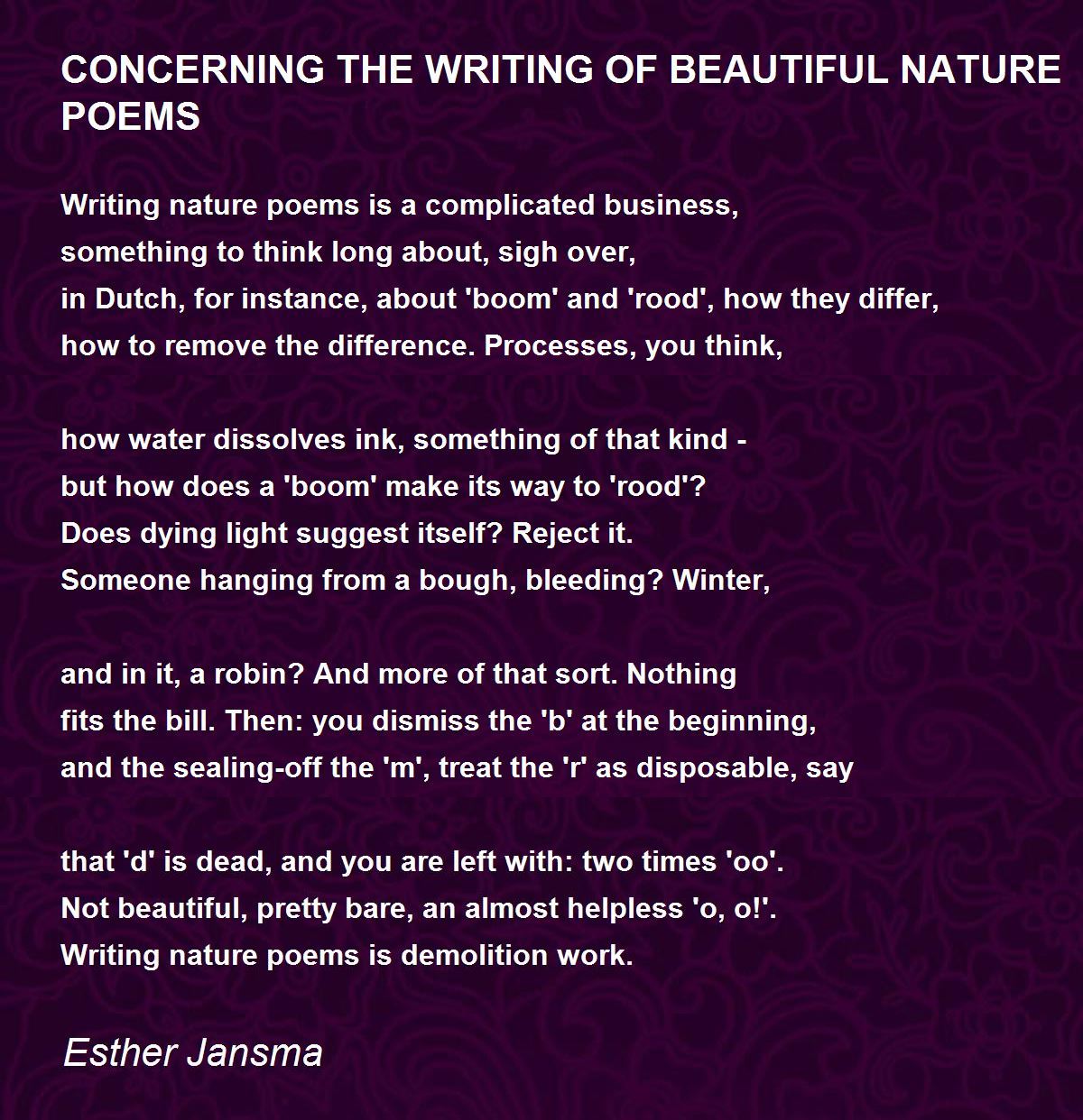 Writing nature poems is a complicated business,