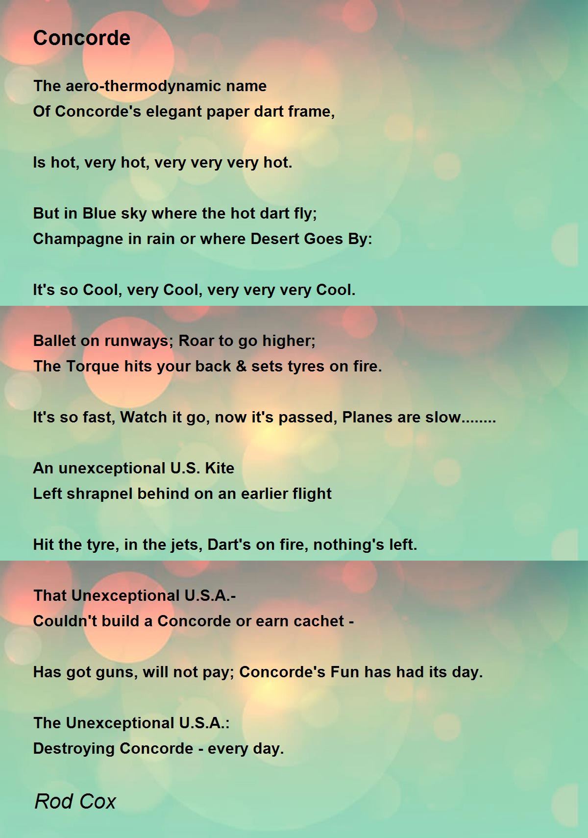 Has got guns, will not pay; Concorde's Fun has had its day.