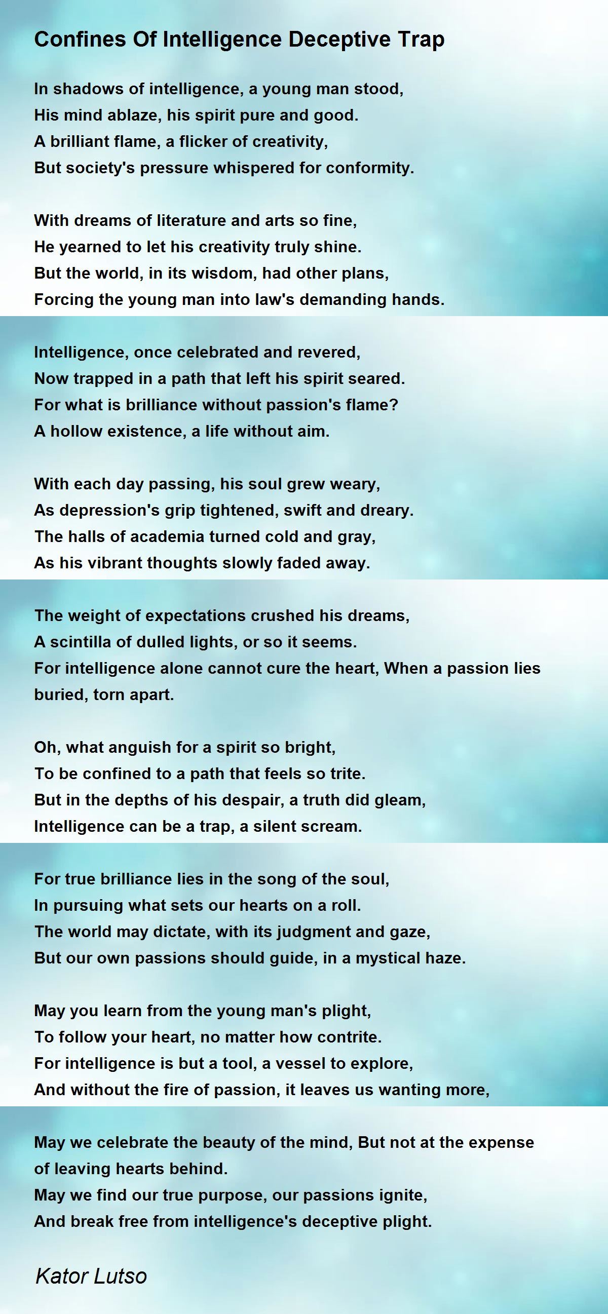 For intelligence alone cannot cure the heart, When a passion lies buried, torn apart.