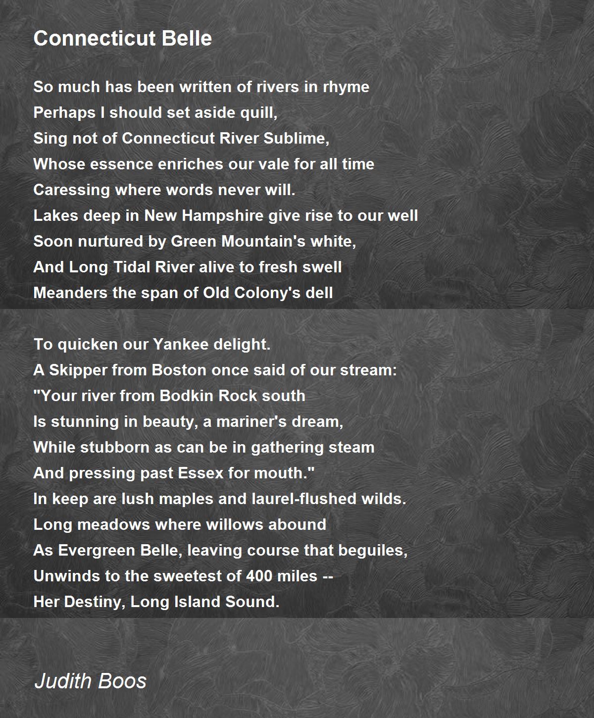 Sing not of Connecticut River Sublime,