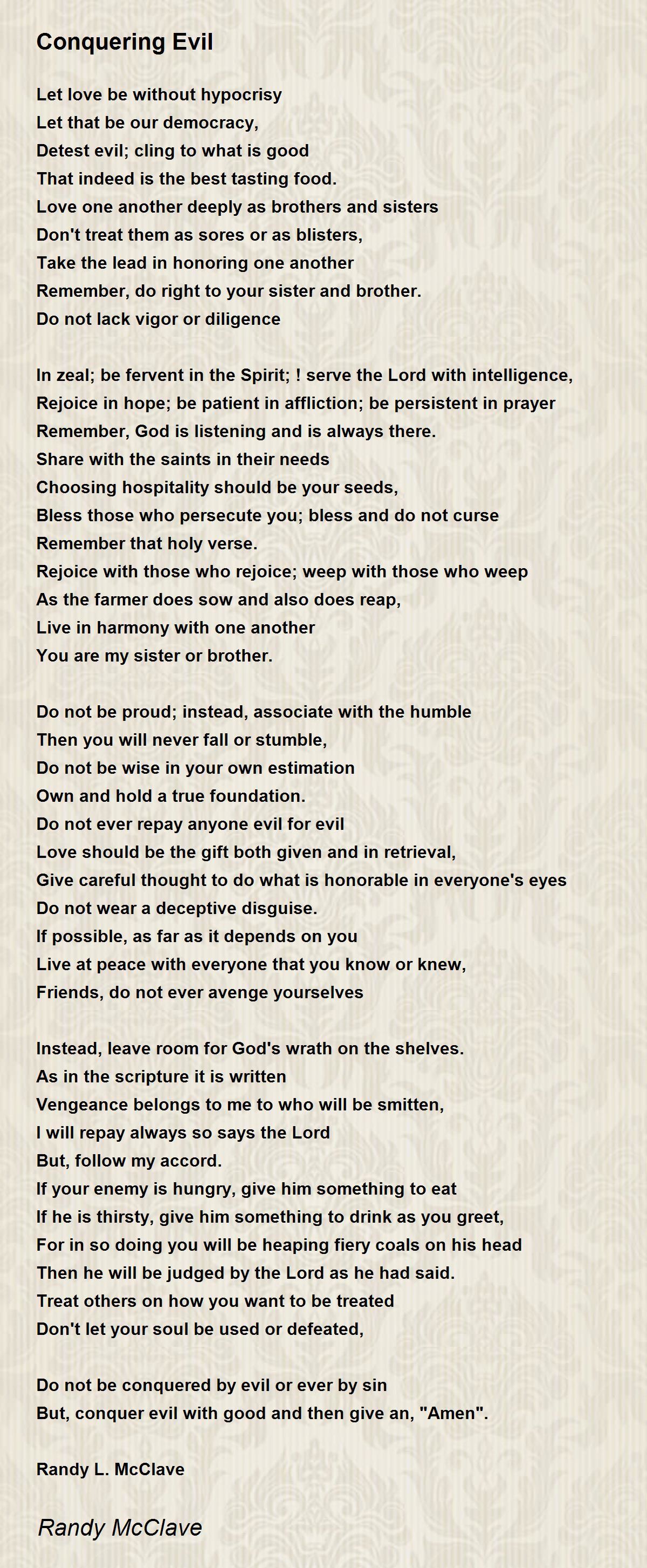 But, conquer evil with good and then give an, "Amen".