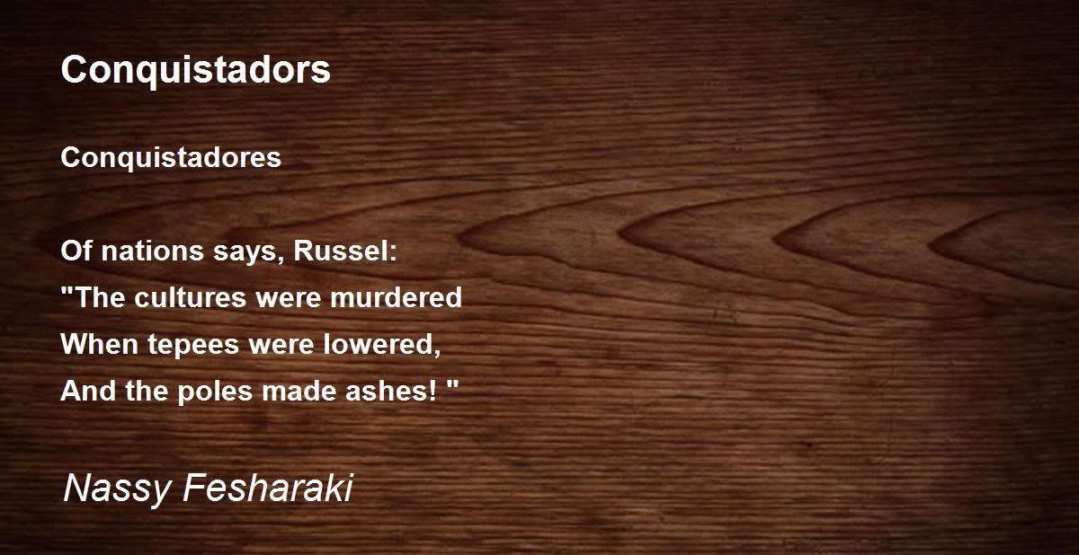Conquistadores Of nations says, Russel: "The cultures were murdered When tepees were lowered, And the poles made ashes! "