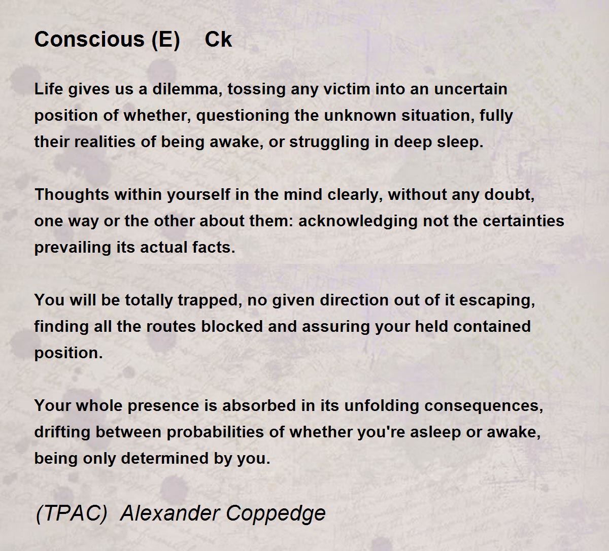 Life gives us a dilemma, tossing any victim into an uncertain position of whether, questioning the unknown situation, fully their realities of being awake, or struggling in deep sleep.