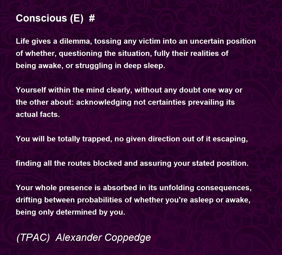 Life gives a dilemma, tossing any victim into an uncertain position of whether, questioning the situation, fully their realities of being awake, or struggling in deep sleep.