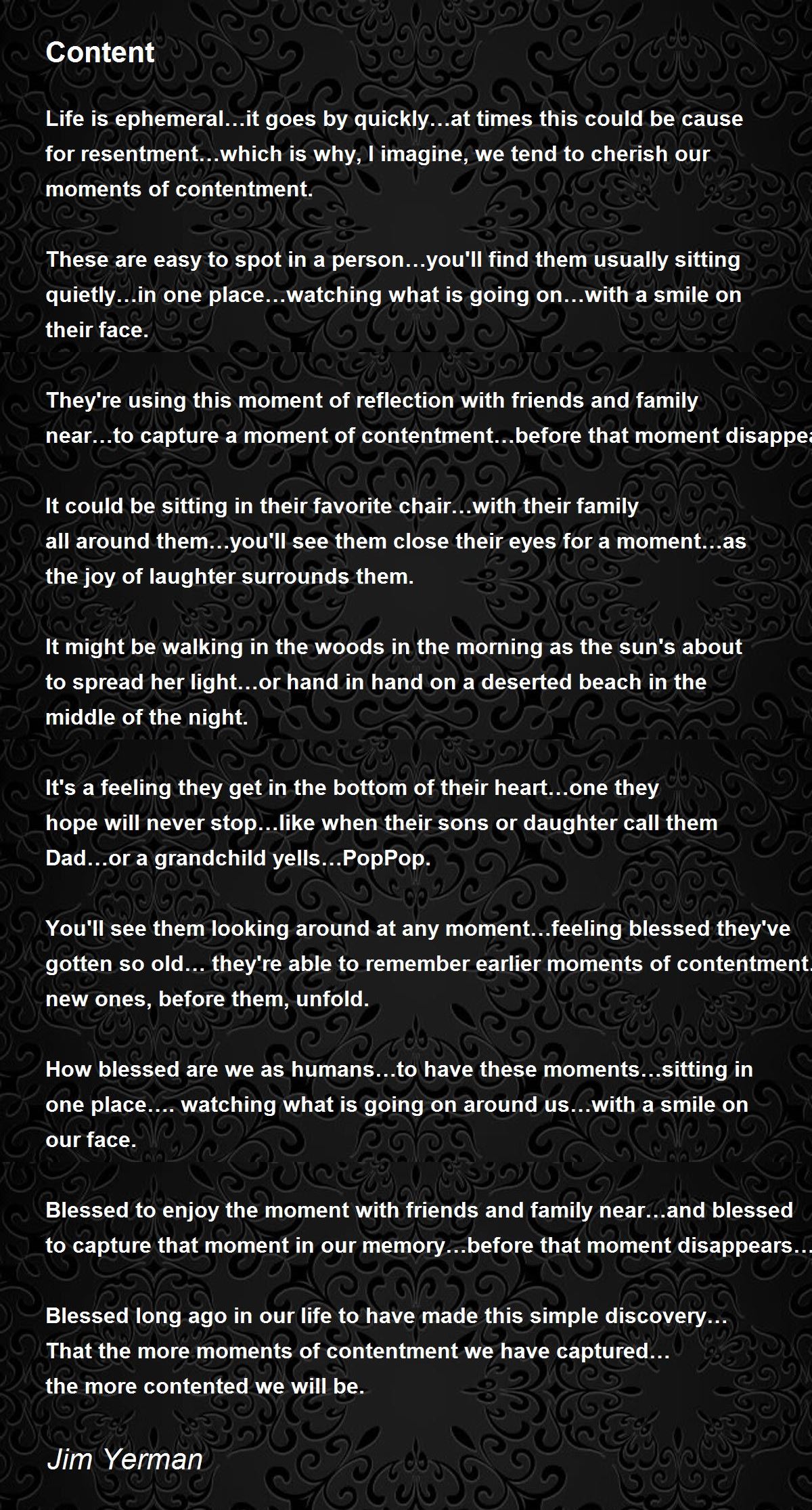 Life is ephemeral…it goes by quickly…at times this could be cause for resentment…which is why, I imagine, we tend to cherish our moments of contentment.