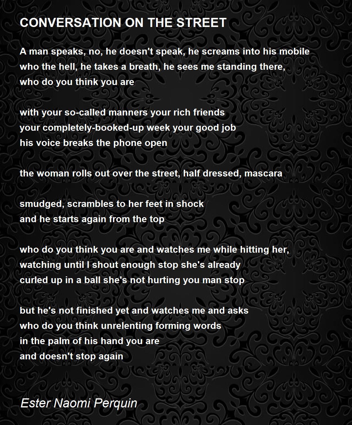 the woman rolls out over the street, half dressed, mascara