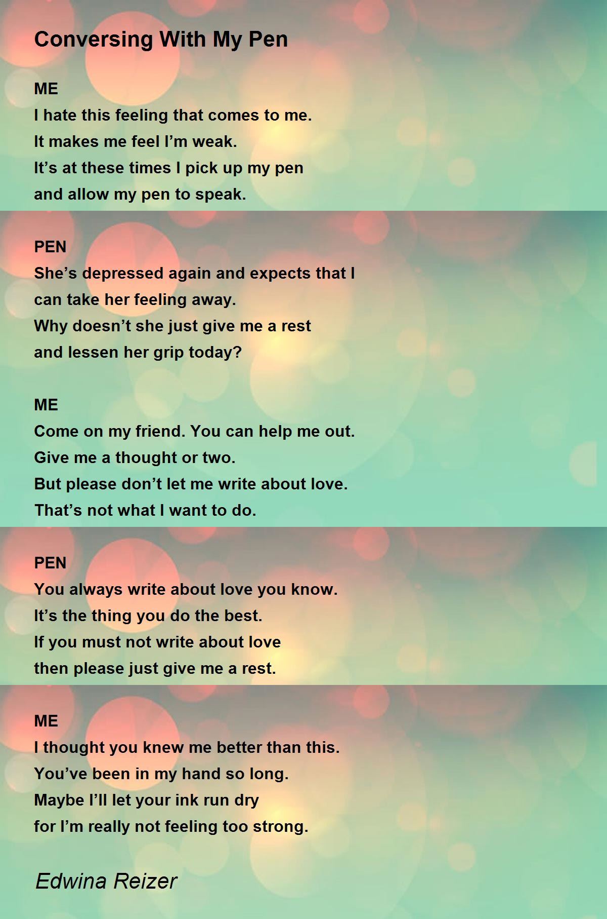 I love this poem! I think I know such conversations, had them too, more than once. Some times we get tired and we want to write of other things than love but whatever we do the poem turns out filled with love. As long as heart is filled with it, would be too hard to write of stranger things. But sometimes we need to recharge, how do you do it? Thank you for share, a loving poem!