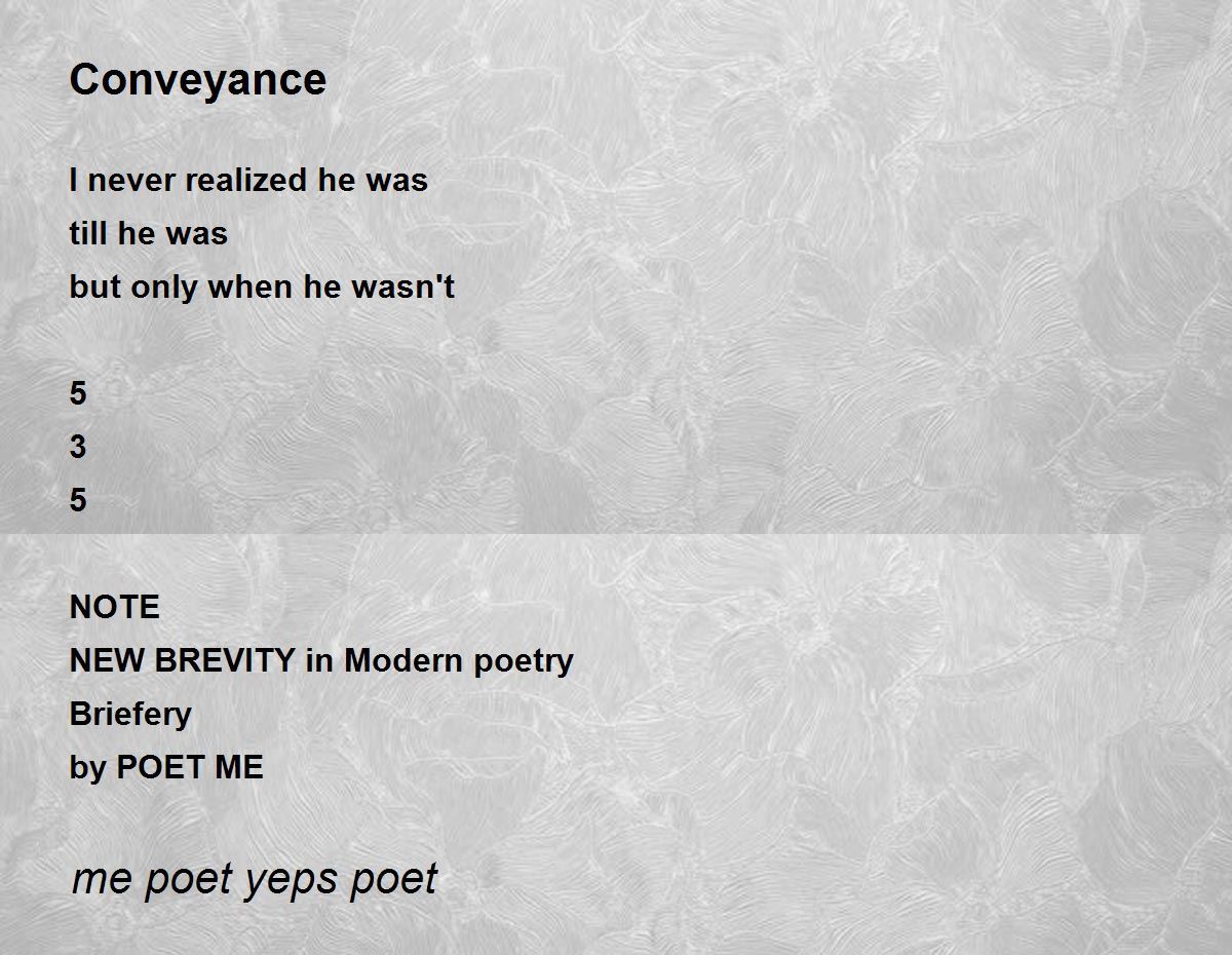 I never realized he was till he was but only when he wasn't 5 3 5 NOTE NEW BREVITY in Modern poetry Briefery by POET ME