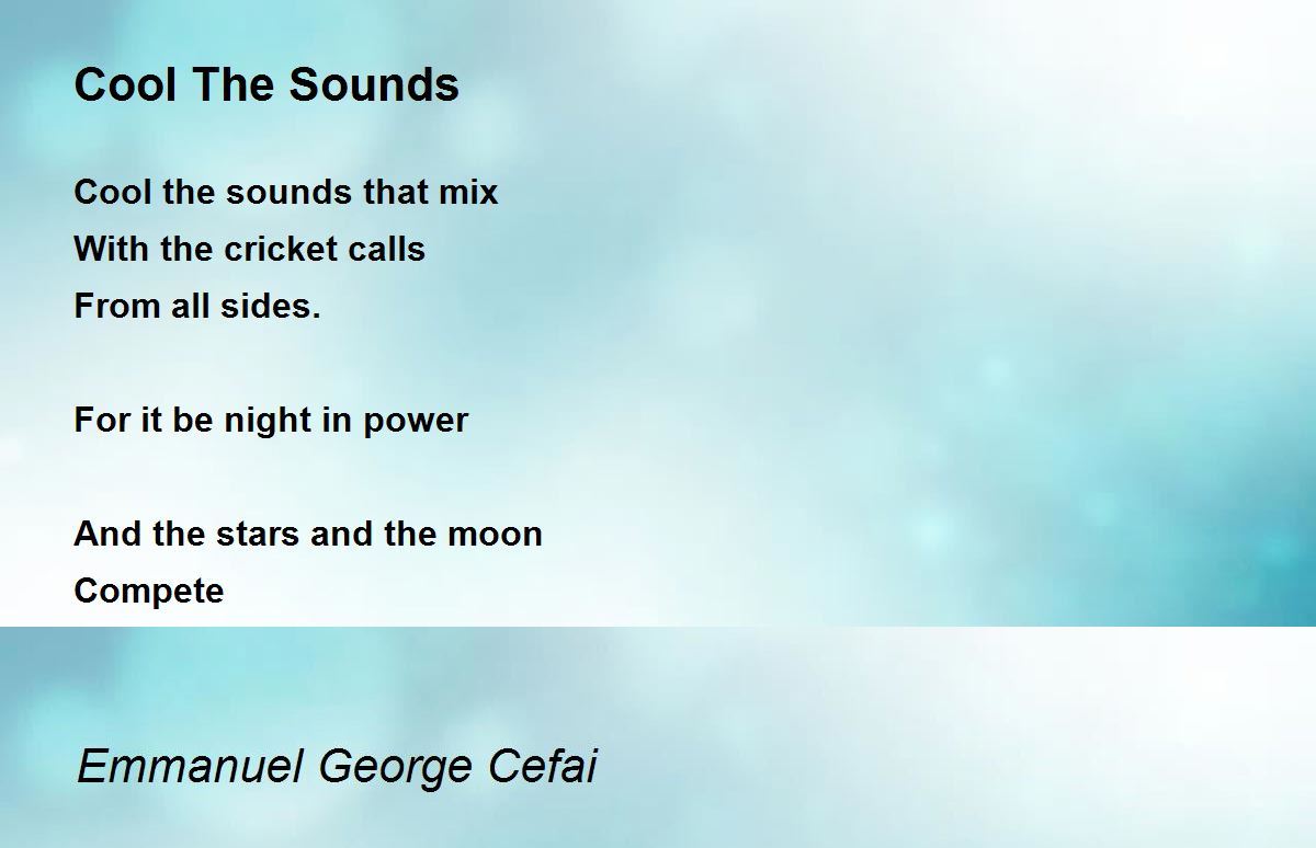 Cool the sounds that mix With the cricket calls From all sides. For it be night in power And the stars and the moon Compete