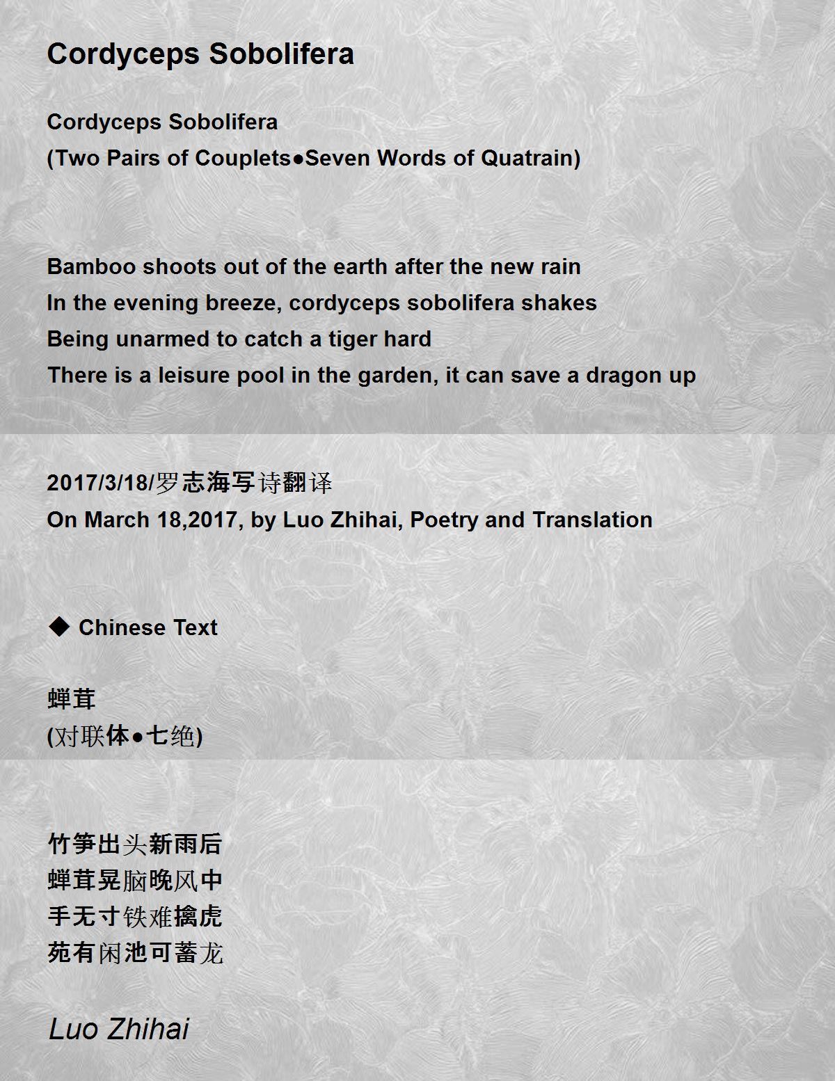 On March 18,2017, by Luo Zhihai, Poetry and Translation